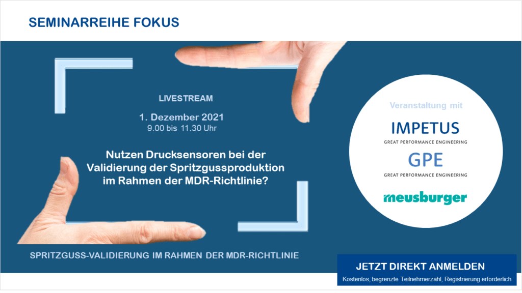 Am 1.12.2021│9.30 h bis 11.30 h informieren Sie die Experten von #ImpetusPlastics und #Meusburger über den Einsatz und Nutzen von Drucksensoren bei der Validierung von Spritzgussprodukten