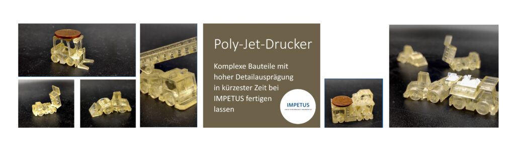3D-Druck-Bauteile mit hoher Komplexität IMPETUS unterstützt Sie bei der Additiven Fertigung von Prototypen und Kleinserien hoher Komplexität Poly-Jet ist ein fortschrittliches 3D-Druckverfahren für die präzise Herstellung von kleinen und mittelgroßen Bauteilen. Es verwendet winzige Tröpfchen flüssigen Photopolymermaterials, die schichtweise auf eine Bauplattform aufgetragen und sofort mit UV-Licht ausgehärtet werden. Poly-Jet ermöglicht detaillierte Strukturen, komplexe bewegliche […]